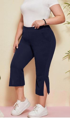 ER - PLUS Elastic Waist Split Hem Capri Pants - Navy