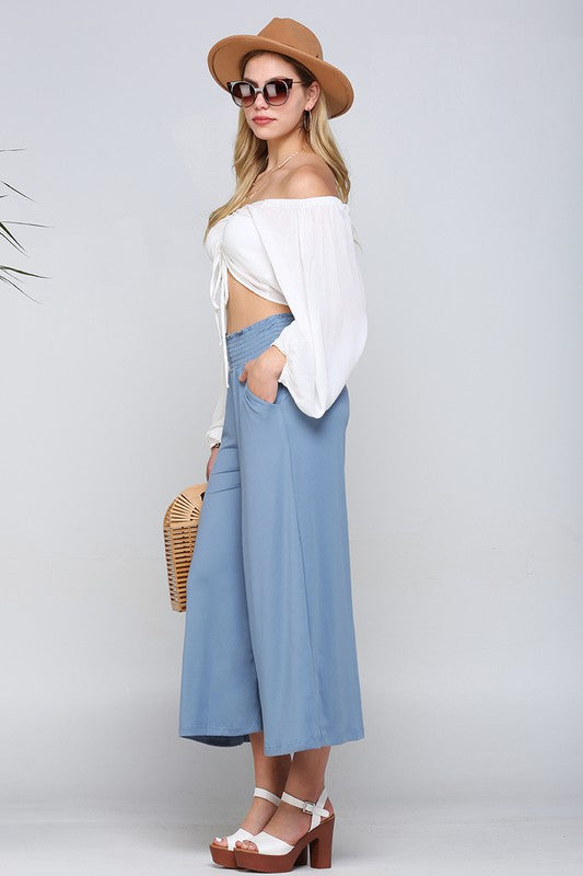 Taking casual to a whole new level! These Gaucho pants with pockets are the perfect on the go or dress me up apparel. Comfortable, breathable, and light weight!