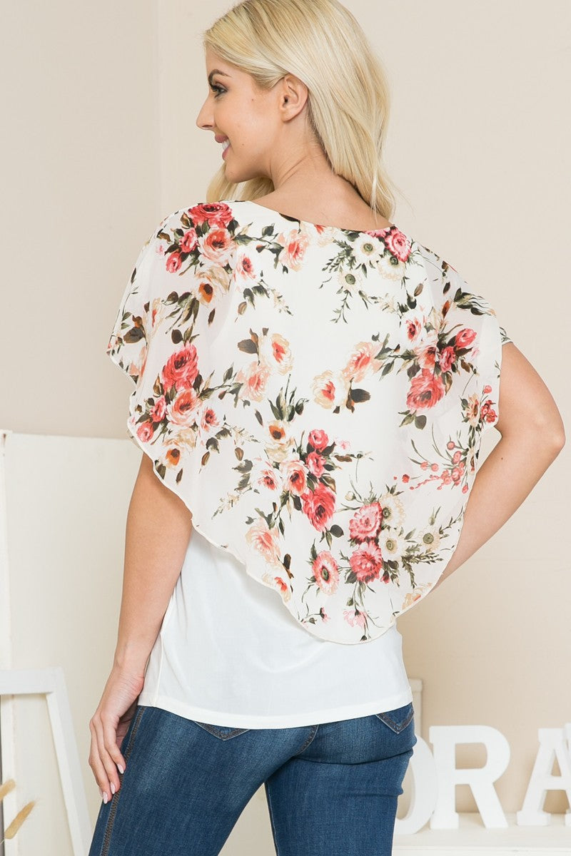 Flower Print Chiffon Layered Top on Stretchy ITY Fabric.Fabric: Knit Jersey
