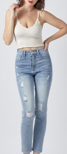 RJ - High Waist Distressed Jeans - Light (Sizes 5, 7, 9, 11, 13)