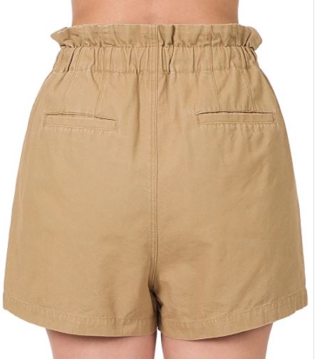 ZEN - Stone Wash Elastic Waist Shorts - Dark Beige