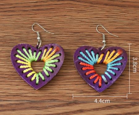 The perfect match for your heart attire! These wood (coconut) earrings boast bright beautiful embroidery of all colors!