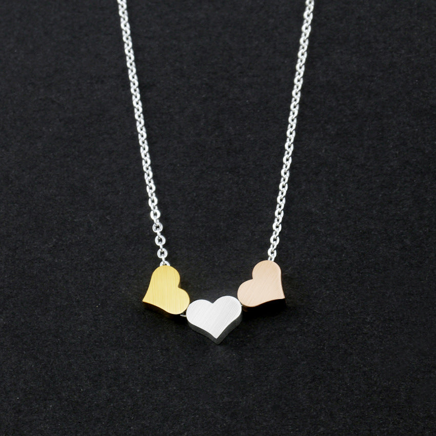 Three floating hearts of stainless steel in gold, silver, and rose gold adorn this short necklace. Simple yet elegant and will surely become a got to piece for your wardrobe!