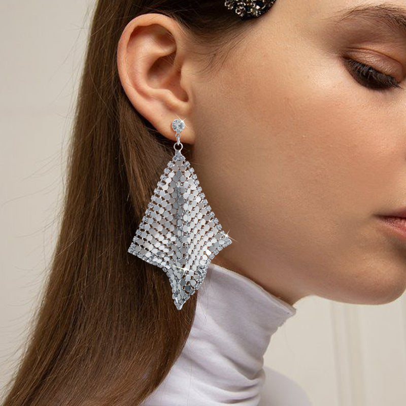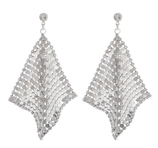 These mesh like sequin with white rhinestone earrings will dress up any outfit!
